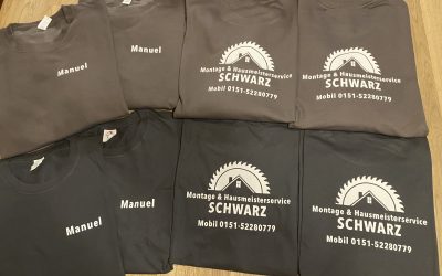 Textil-DruckHausmeister- & Montagearbeiten Schwarz, Winzer Textilbeschriftungen für die neuen T-Shirts & Pullover für unseren Kunden Manuel Schwarz. Vielen Dank für den Auftrag